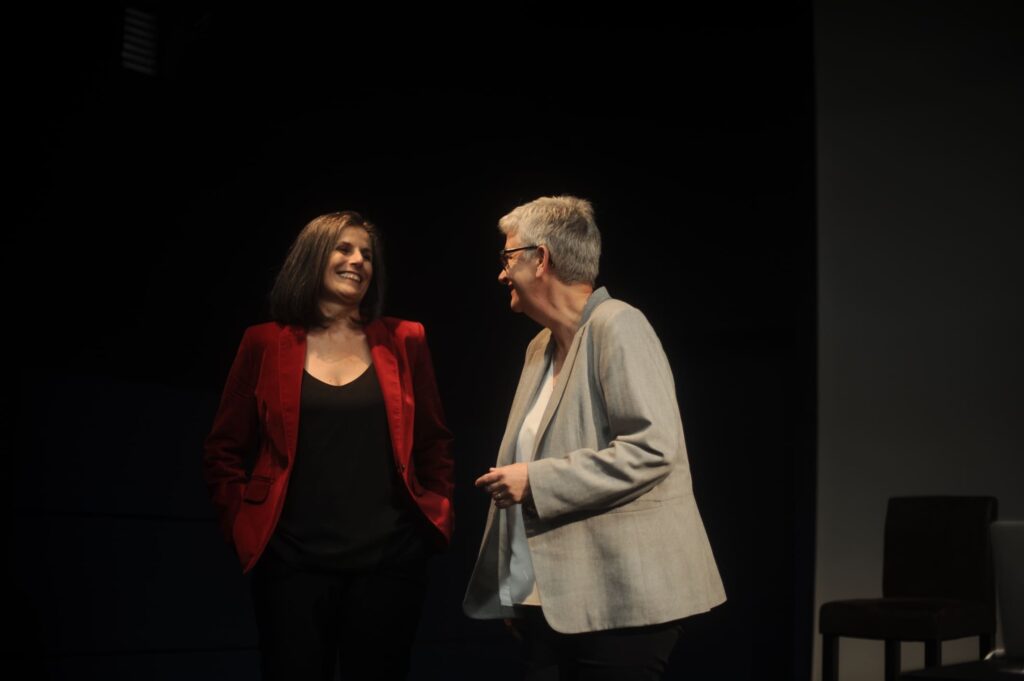 Le fait de jouer alternativement en anglais et en français permet aux acteurs ainsi qu’au public de s’investir pleinement dans une expérience bilingue.
